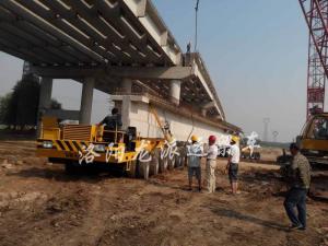 輪胎式運梁車 由兩個分別獨立的運行機構(前車、后車)組成。輪胎式運梁車的前車被動,后車主動,獨立的動力系統設計不同的檔位,運輸過程中根據路面選取不同速度